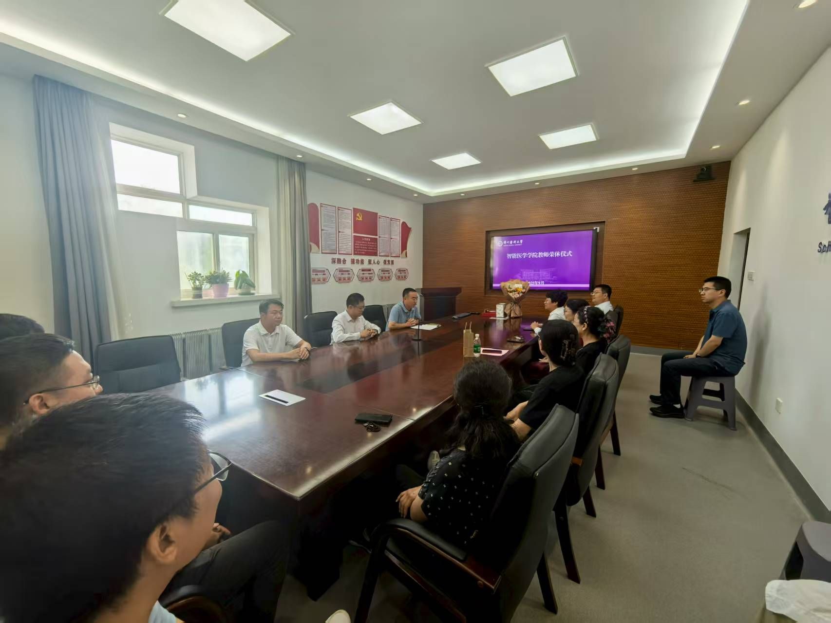 9月10日,在庆祝第41个教师节来临之际,智能医学学院在6教313会议室举行2025年教职工荣休仪式,为退休教师封梅送上真挚的祝福。学院领导班子、视觉智能与媒体教研室主任及教师代表、机关各职能部门负责人参加仪式,仪式由党支部书记李纪文主持。